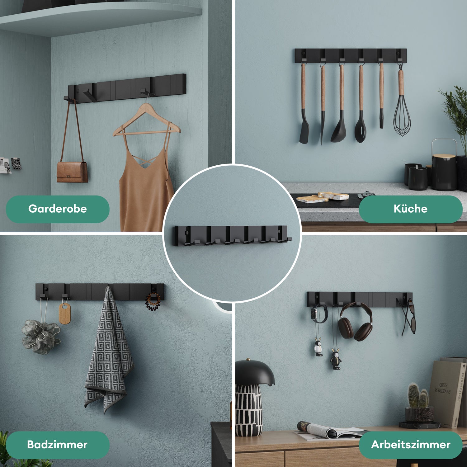 glasvilla Wandgarderobe Wandhaken aus Aluminium Garderobe mit klappbaren Haken Garderobenleiste Garderobenhaken Kleiderhaken