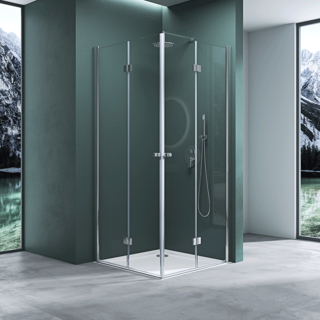 Die Türen dieser Abtrennung sind faltbar, drehbar und klappbar, das spart nicht nur Platz es lässt Ihr Badezimmer auch größer erscheinen. Ein optischer Effekt der sich vor allem in kleineren Badezimmern bemerkbar macht.