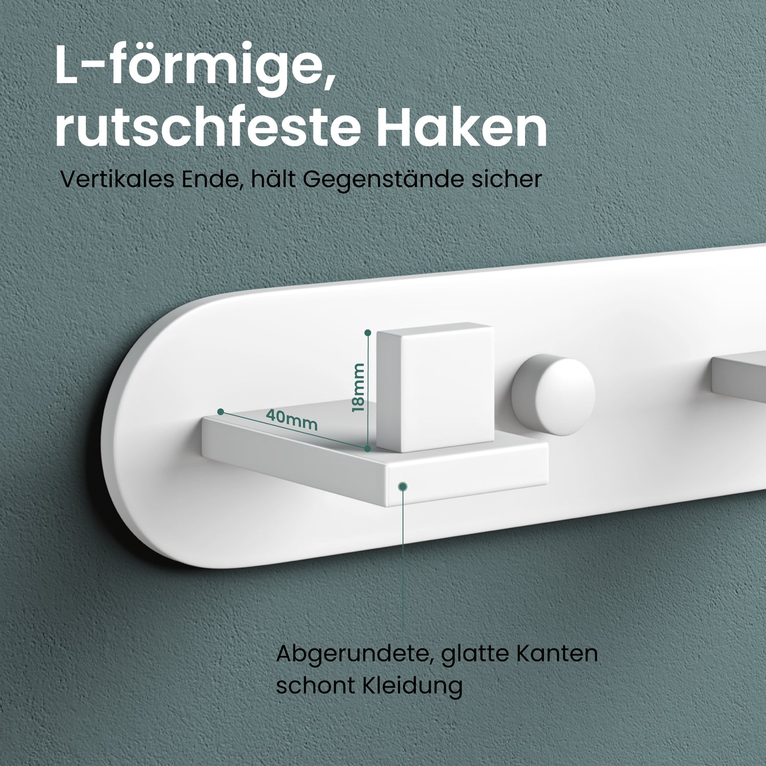 Su diseño en forma de L asegura una sujeción firme de prendas y accesorios, evitando deslizamientos, mientras que los bordes suaves y redondeados protegen la ropa. Gracias a la doble opción de instalación, puede optar por un montaje adhesivo sin taladros o una fijación atornillada para cargas más pesadas.