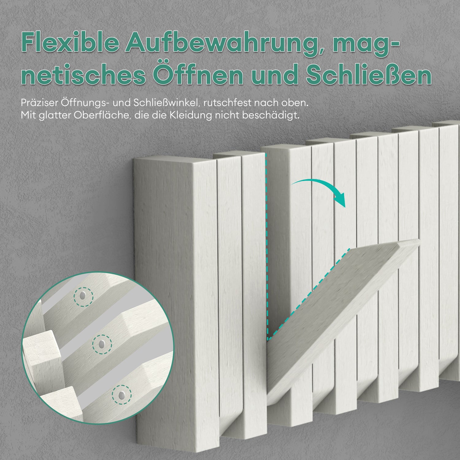 Glasvilla Design – Perchero de pared de madera con 7 ganchos magnéticos abatibles Twigro-01