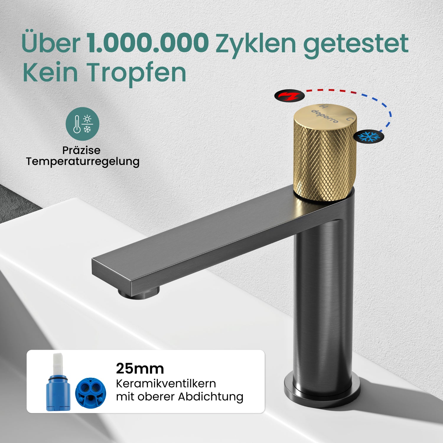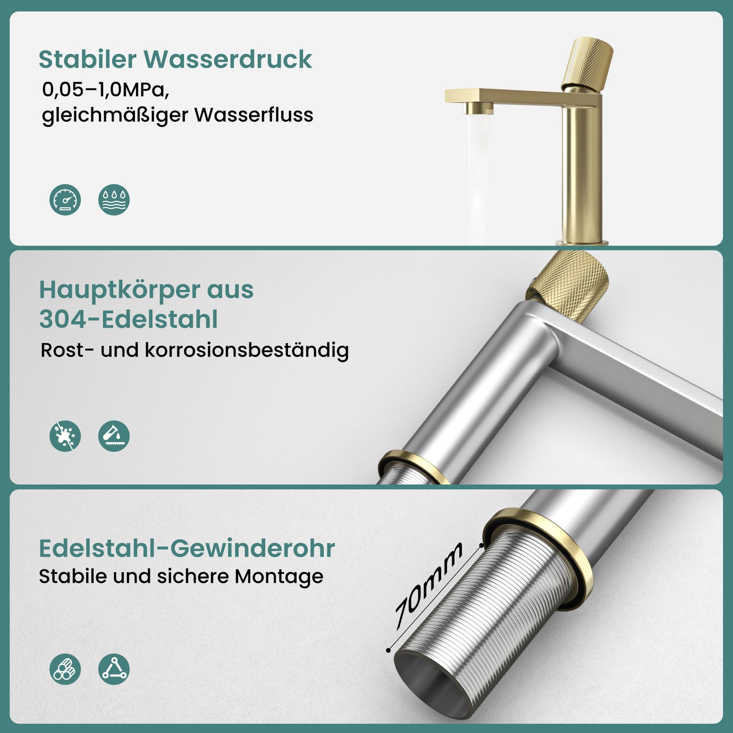 Grifo de Lavabo Glasvilla Fino-01 Monomando de Acero Inoxidable con Ahorro de Agua - Oro Cepillado / 17.7 cm está agotado y se enviará tan pronto como vuelva a estar disponible.