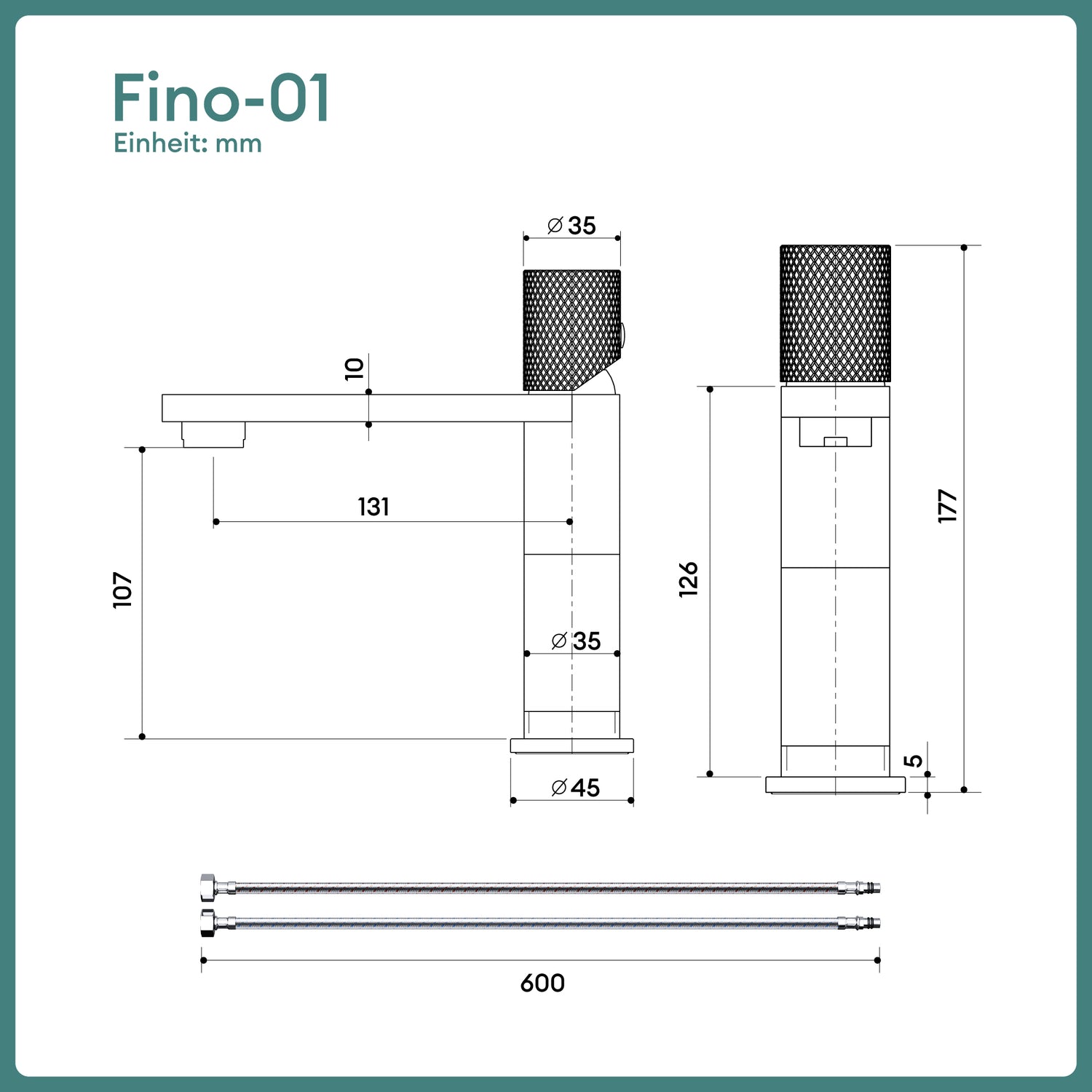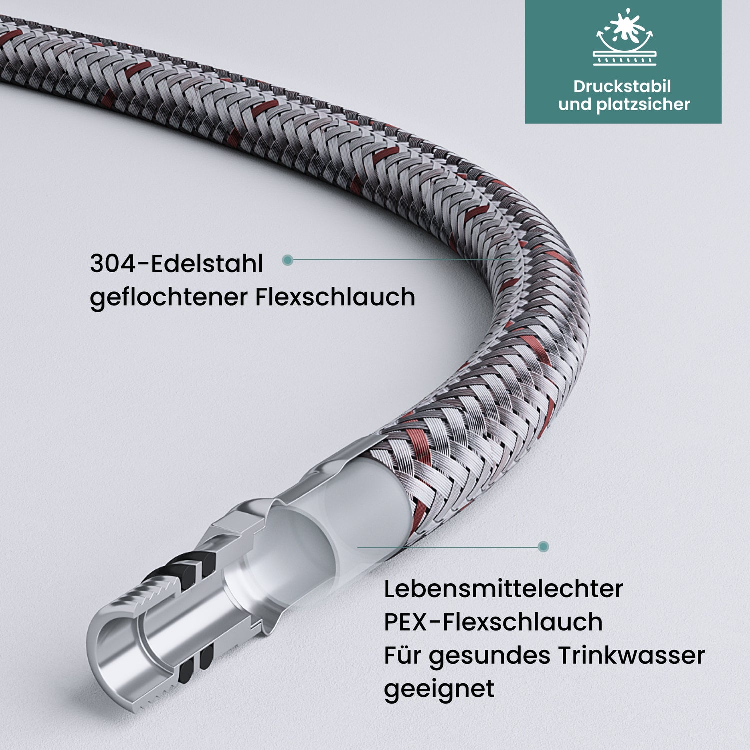 - Incluye: 2 latiguillos flexibles trenzados de 60 cm + kit de montaje
