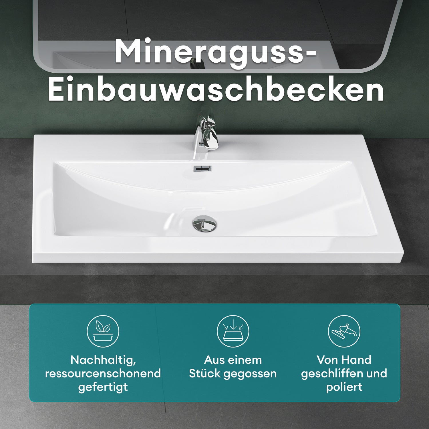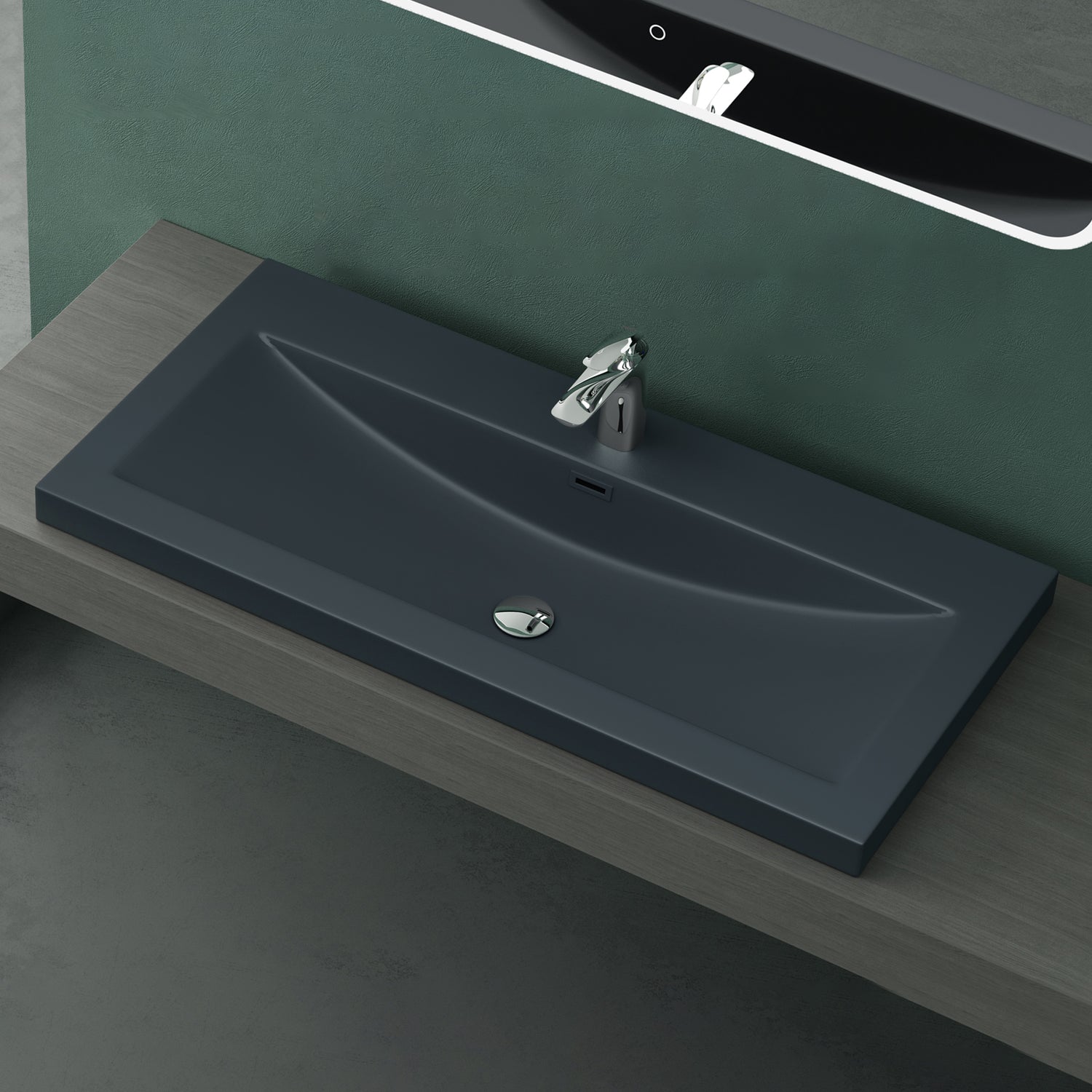 Lavabo Glasvilla Col01 Mineral Cast Rectangular con Desbordamiento y Orificio para Grifo