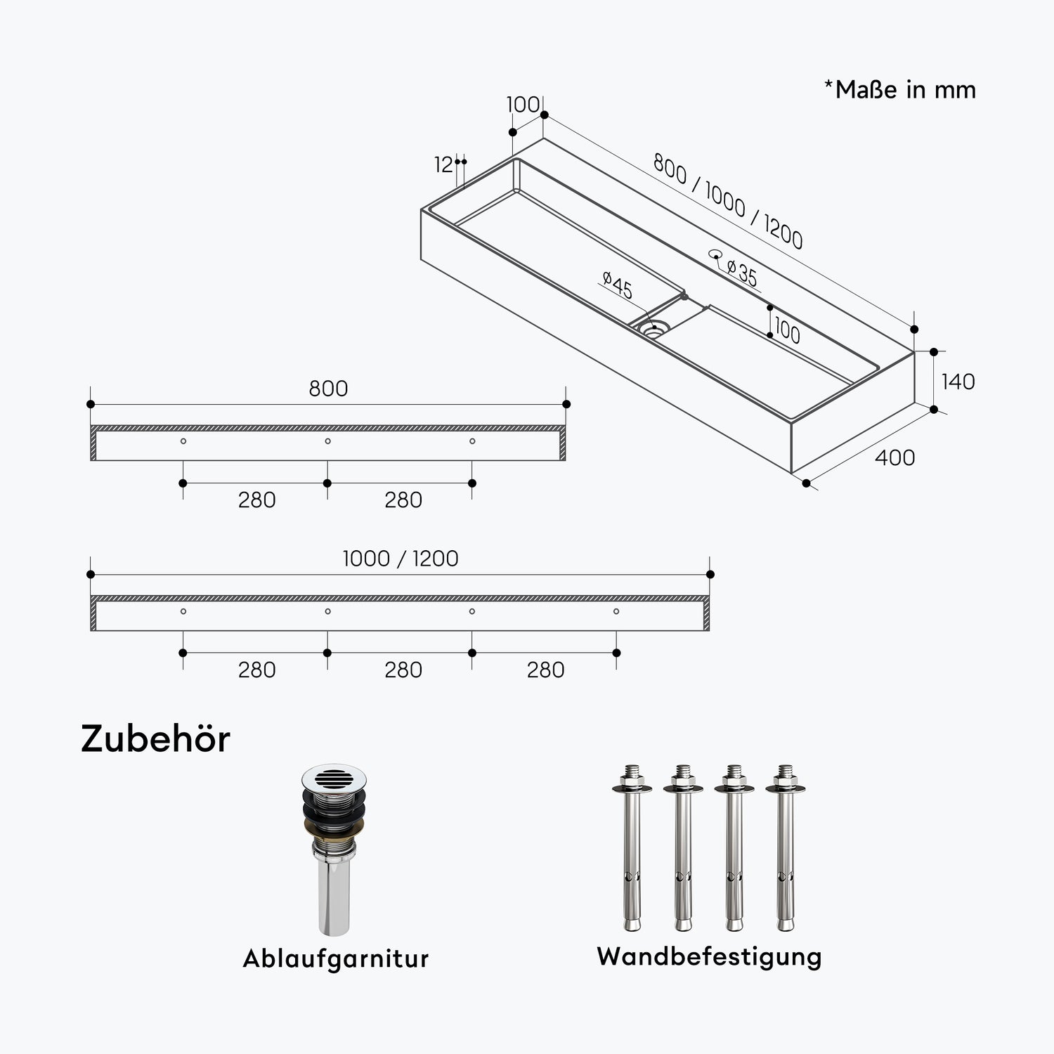 - Material: Mineralguss premium (resina mineral)