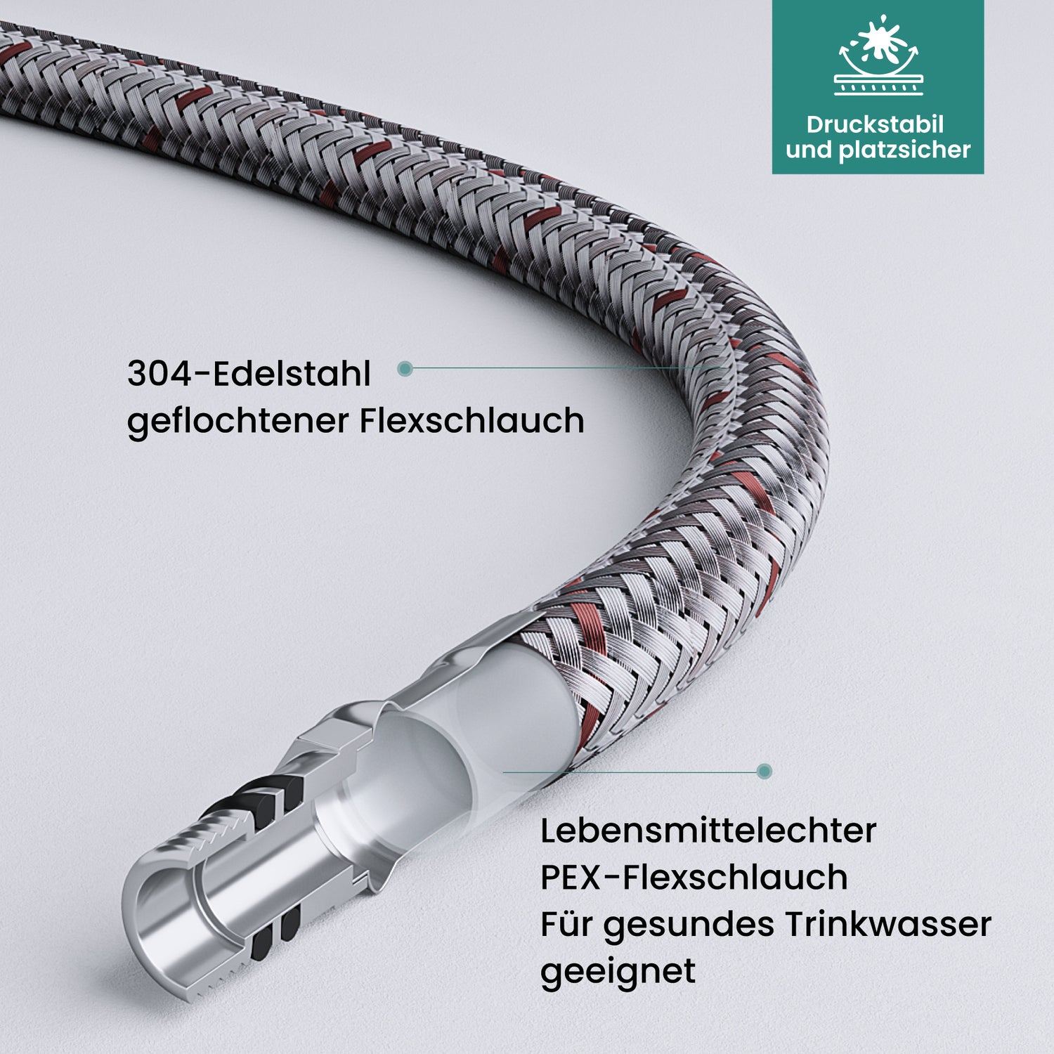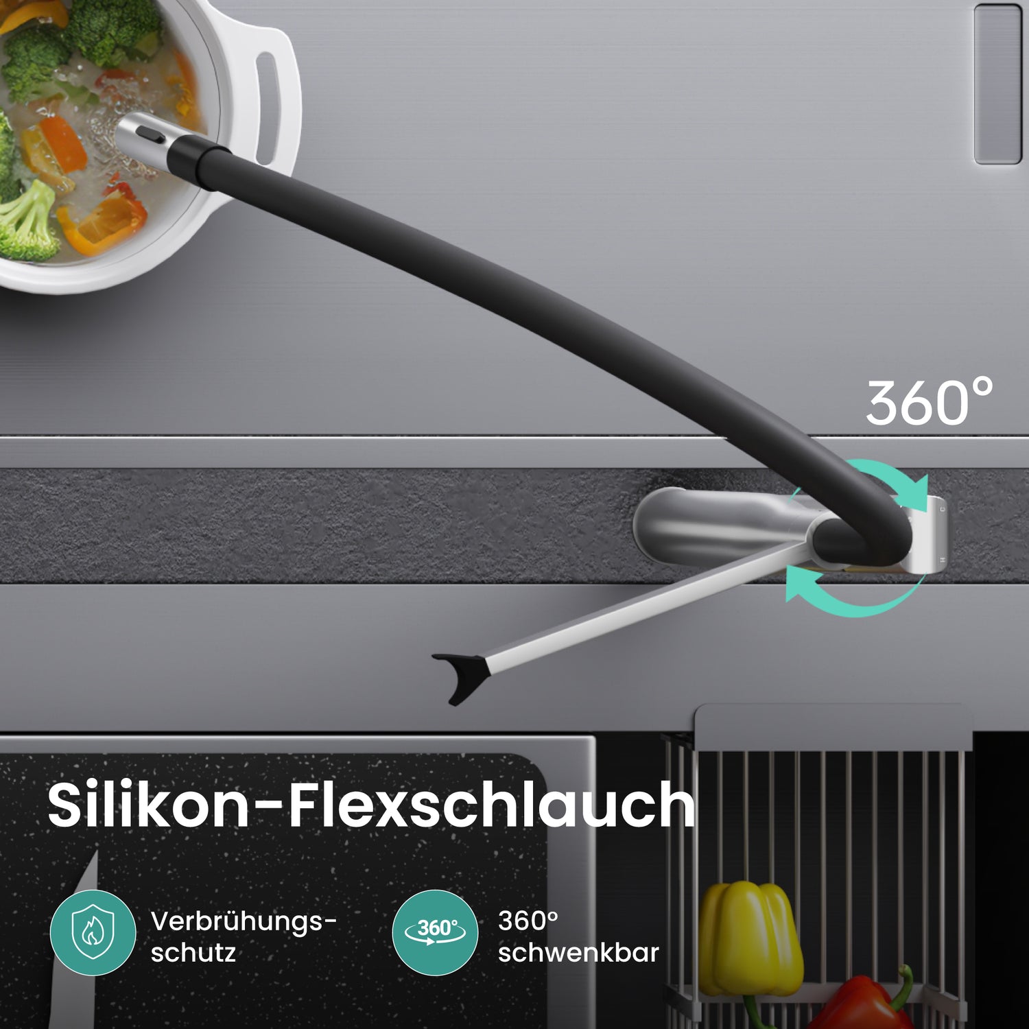 - 360° Drehbar & Hitzebeständig: Der flexible Silikon-Schlauch ist frei in alle Richtungen drehbar, hitzebeständig und für Temperaturen von 4 °C bis 90 °C geeignet.