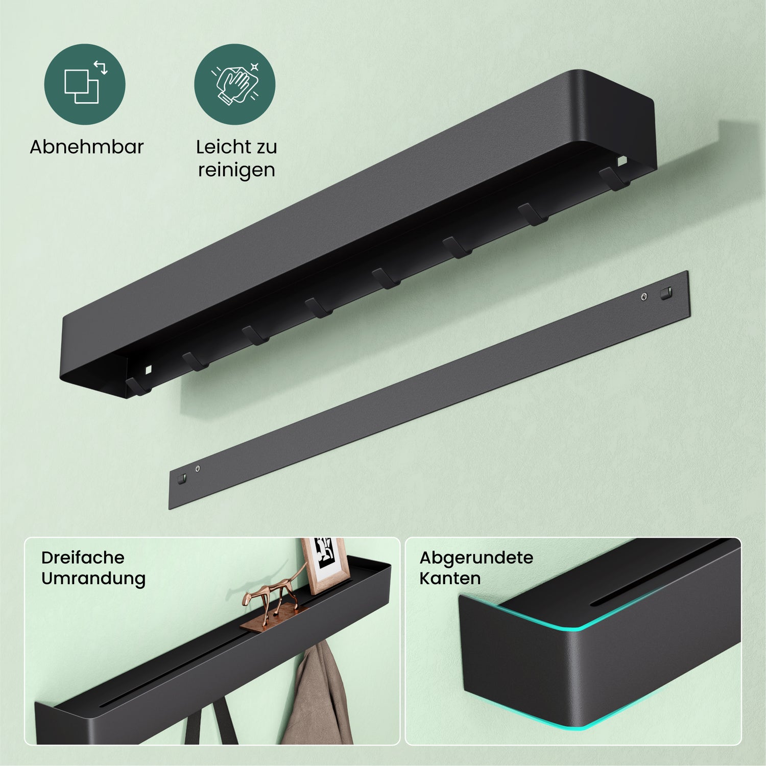 Vielseitig einsetzbar: Ideal für Badezimmer, Küche und Wohnzimmer – sorgt für Ordnung und ermöglicht schnellen Zugriff auf häufig genutzte Gegenstände. Dank der integrierten Haken auch hervorragend als Kleiderhaken oder Handtuchhalter geeignet.