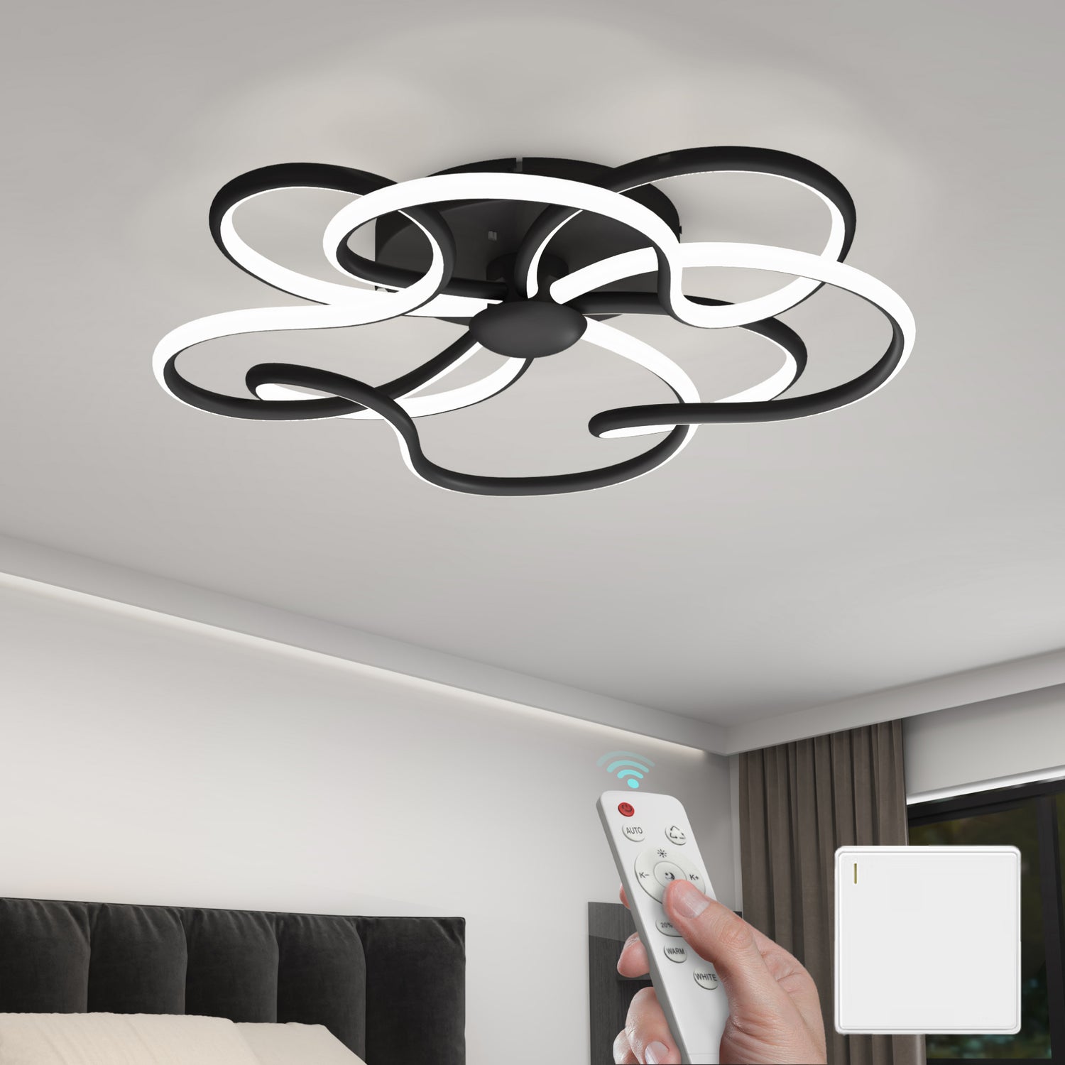 glasvilla LED Deckenleuchte Deckenlampe mit Fernbedienung 64cm, Stufenlos dimmbar 3000-6400K, Zimmerlampe 112W Schwarz für Schlafzimmer, Wohnzimmer, Arbeitszimmer, Flur Alivetta25036