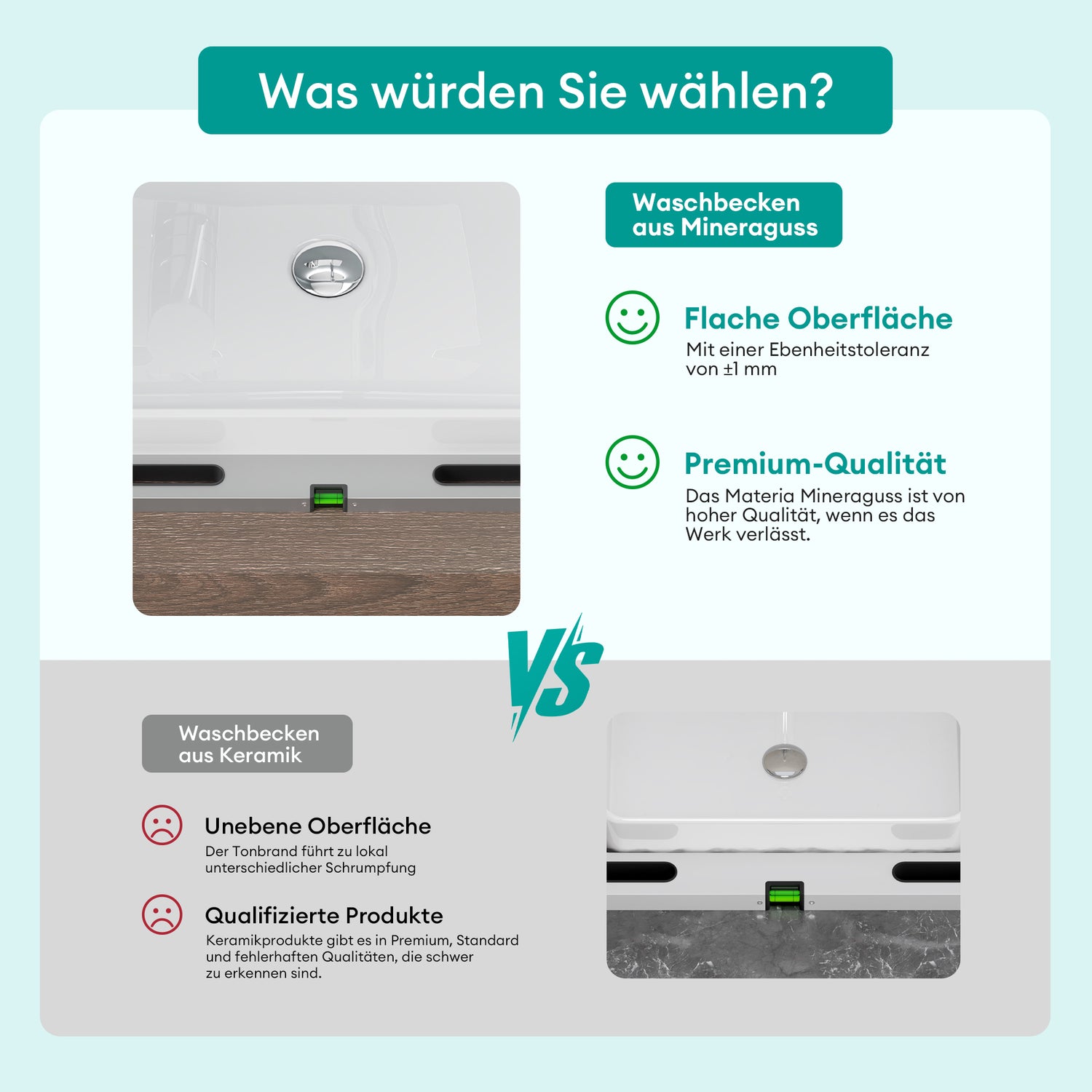 Ein Waschbecken aus Mineralguss ist nicht nur hygienisch sondern auch sehr leicht zu reinigen. Das Material ist robust und besitzt dadurch eine hohe Lebensdauer. Zusätzlich besitzt Gussmarmor / Mineralguss eine wärmespeichernde Eigenschaft.