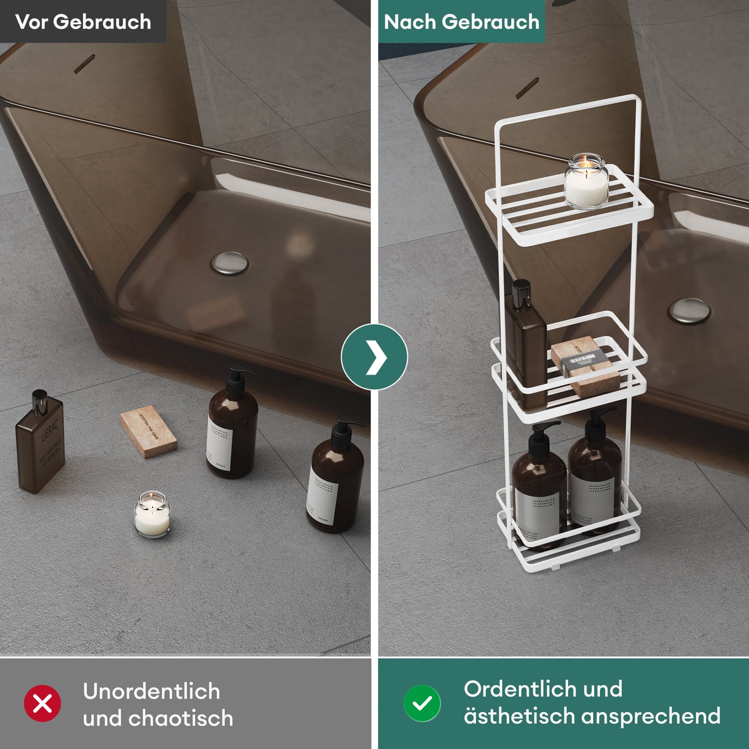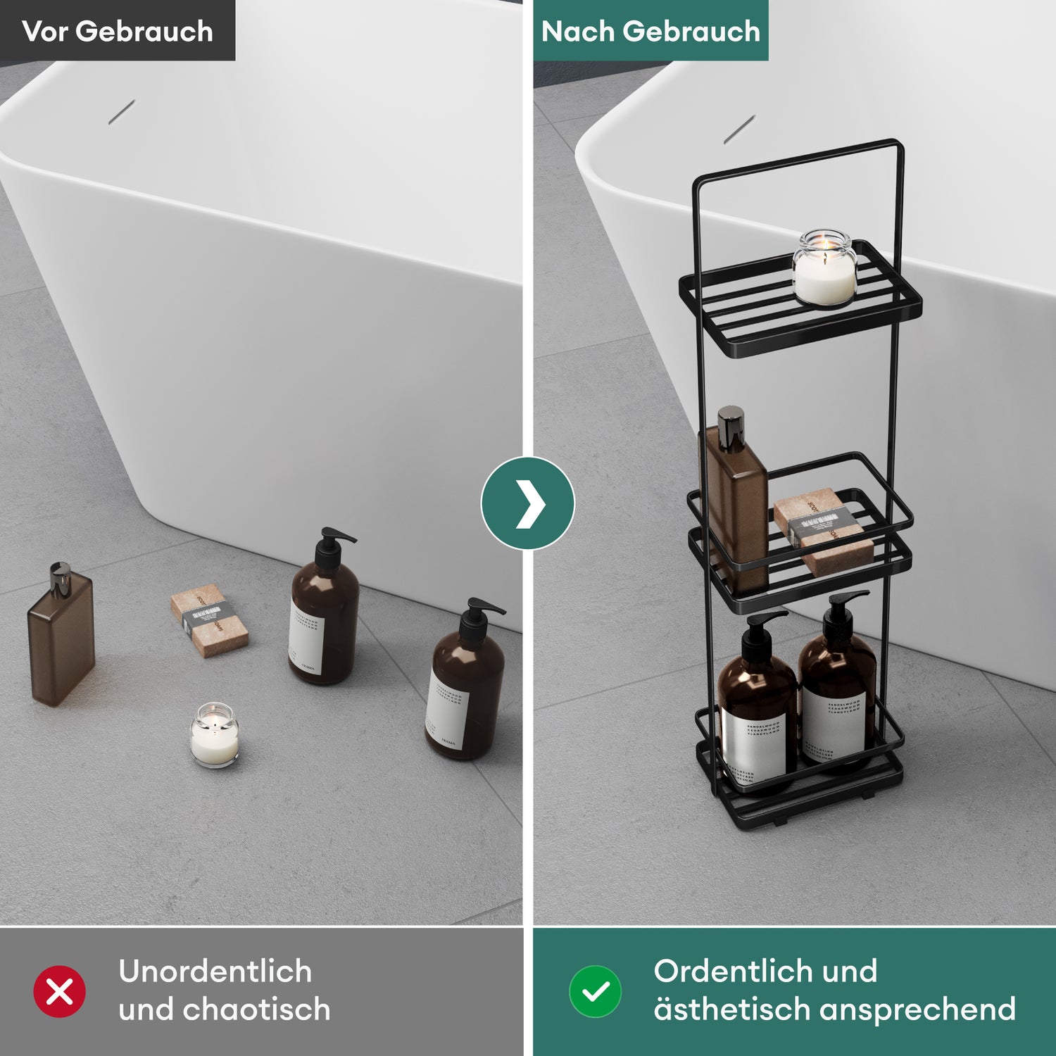 - Mehrlagig mit Ablagen: Mit 3 Ebenen bietet dieses Badezimmerregal reichlich Stauraum für Kosmetik, Dekoartikel oder Duschutensilien – für ein perfekt organisiertes Bad