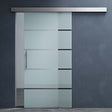 Ensemble complet de porte coulissante en verre Glasvilla Amalfi H : 2050 mm, type de poignée : barre, avec mécanisme de fermeture amortie, verre de sécurité trempé de 8 mm - 1025×2050 + Fermeture amortie / Bandes de verre dépoli | Dégagement mural de 25 mm est en rupture de stock et sera expédié dès qu’il sera de retour en stock.