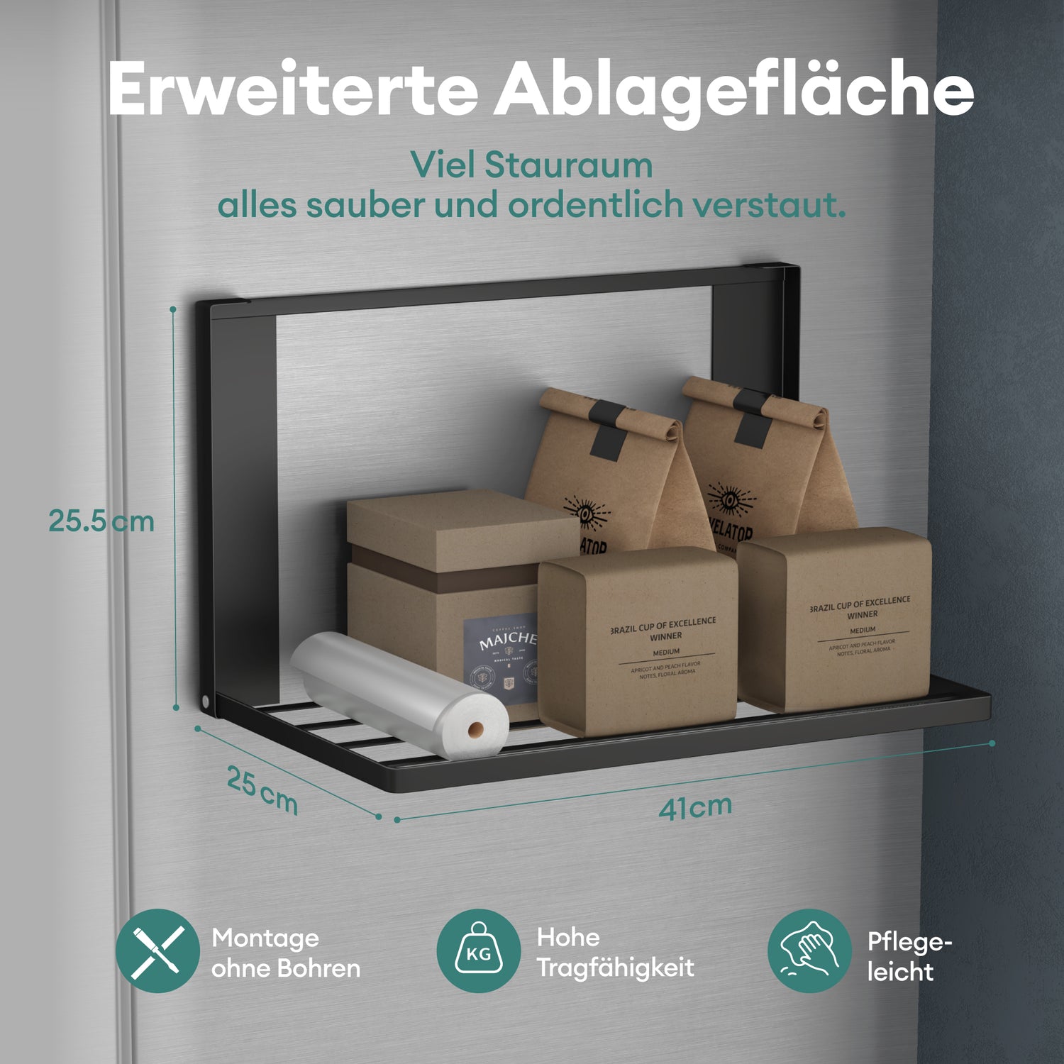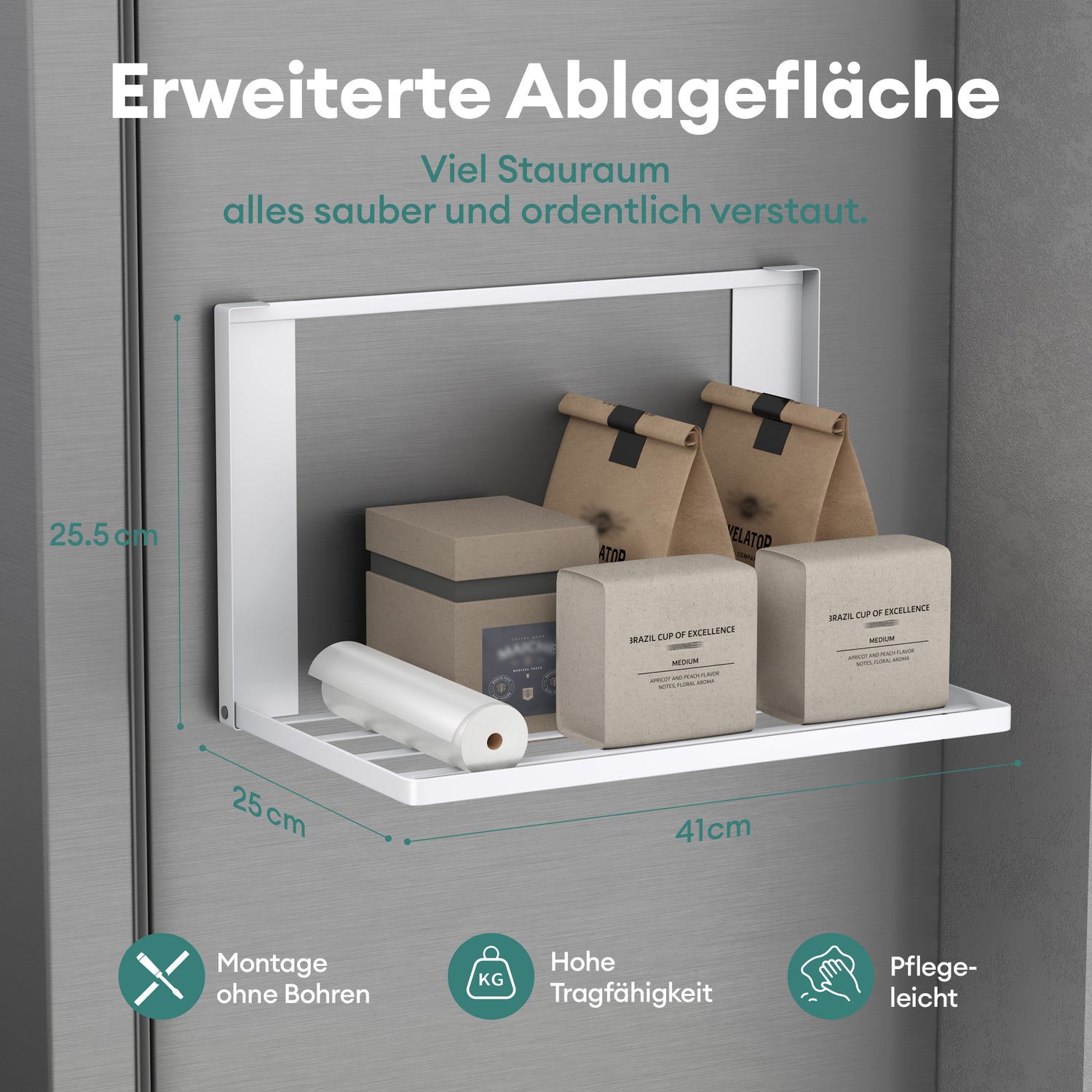 - Erweiterte Ablagefläche: 41 × 25 cm Ablagefläche bietet viel Platz für Handtücher, Pflegeprodukte oder Alltagsgegenstände – alles bleibt ordentlich und griffbereit