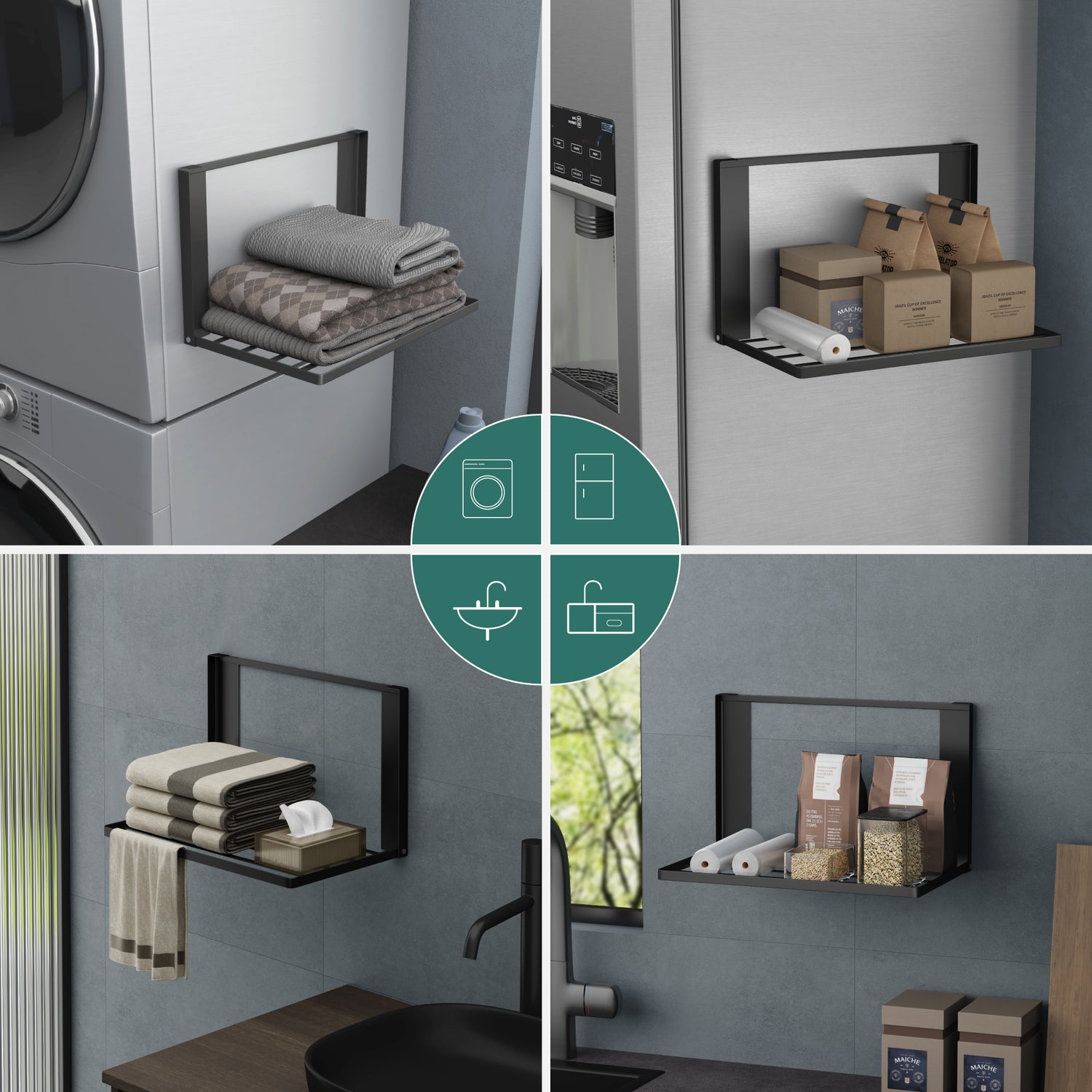 glasvolla Handtuchhalter Badetuchhalter Magnetische Regale für Waschmaschine Klappregal Wandregal ohne Bohren 41x25cm Multifunktionaler Regal für Kühlschrankseit, Bad, Küche Folda-01 - Matt Schwarz est en rupture de stock et sera expédié dès qu’il sera de retour en stock.