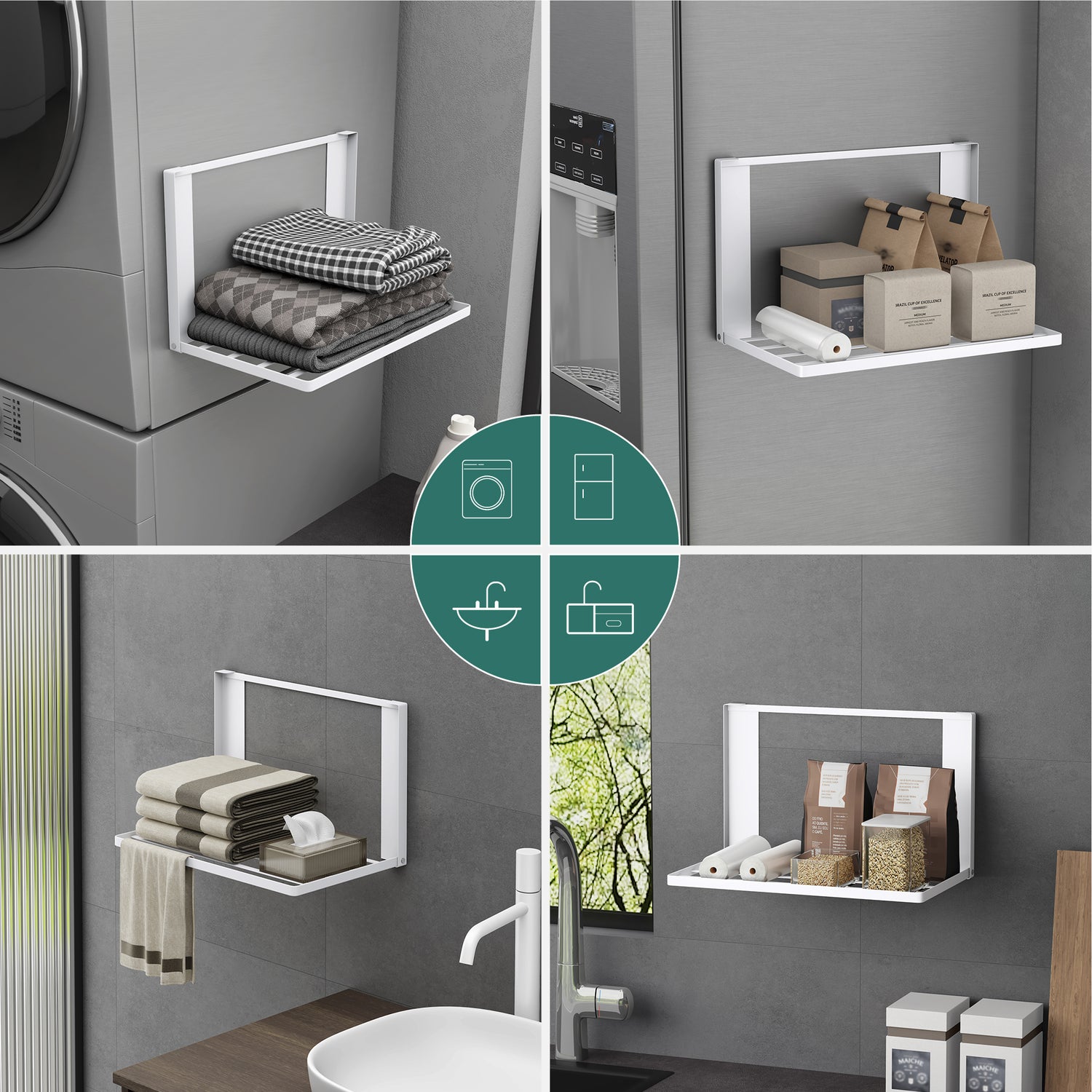 glasvolla Handtuchhalter Badetuchhalter Magnetische Regale für Waschmaschine Klappregal Wandregal ohne Bohren 41x25cm Multifunktionaler Regal für Kühlschrankseit, Bad, Küche Folda-01