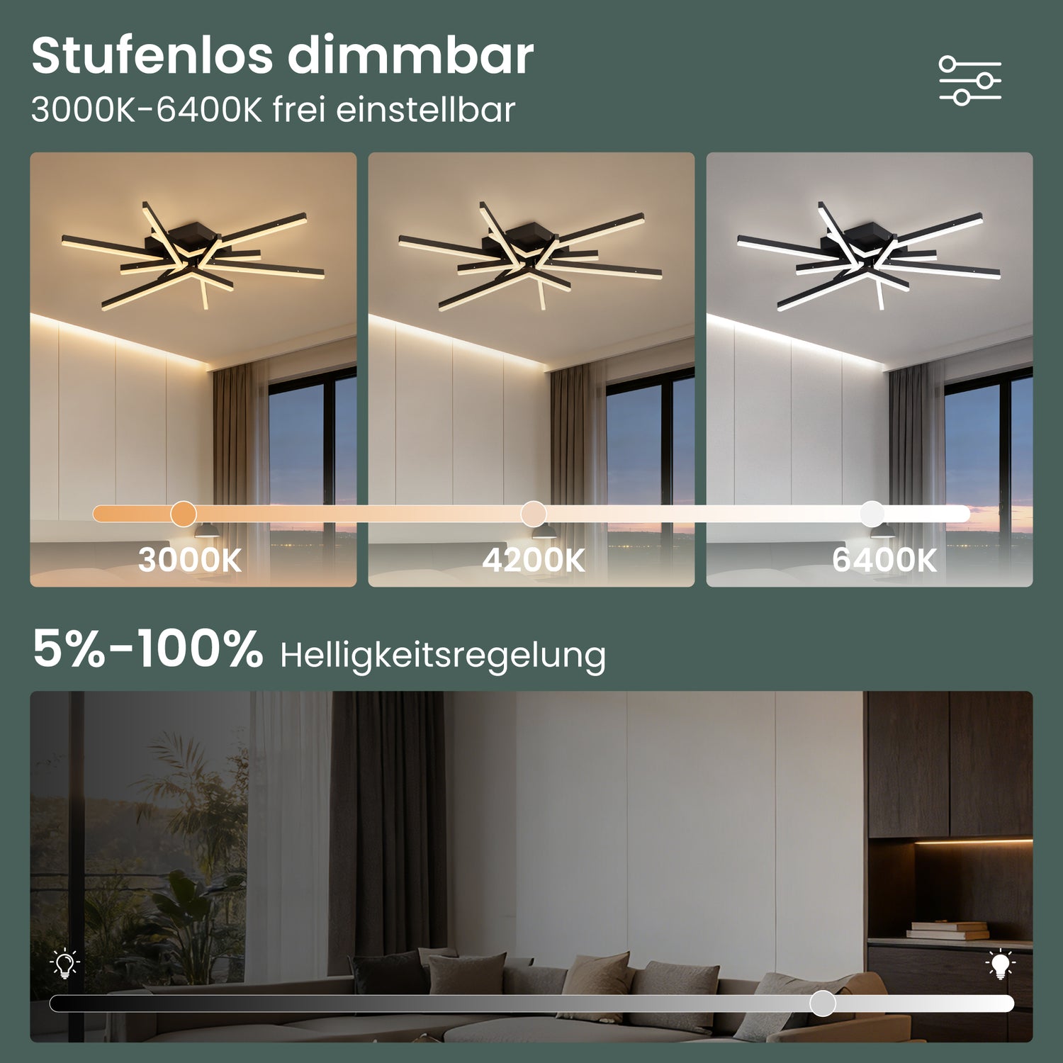 glasvilla Plafoniera LED Soffitto 71W, Lampadario LED Soffitto 3000K - 6400K Illuminazione a Soffitto Moderna per Camera da Letto Sala Cucina Bagno Corridoio, Nero Sabbia, Alivetta25038