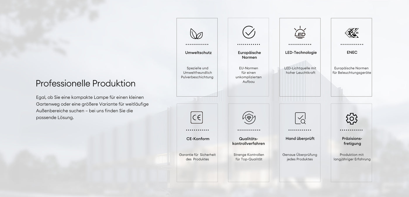 - Hochwertige Materialien: Die Außenlampen sind mit einer speziellen Pulverbeschichtung versehen. Diese Beschichtung schützt vor Rost und Abnutzung, selbst bei extremen Wetterbedingungen.