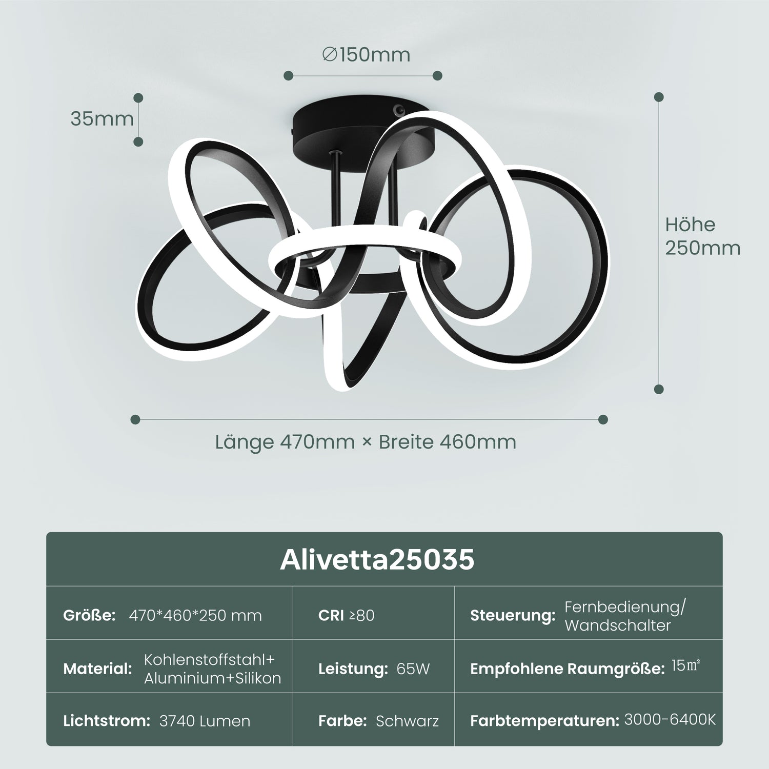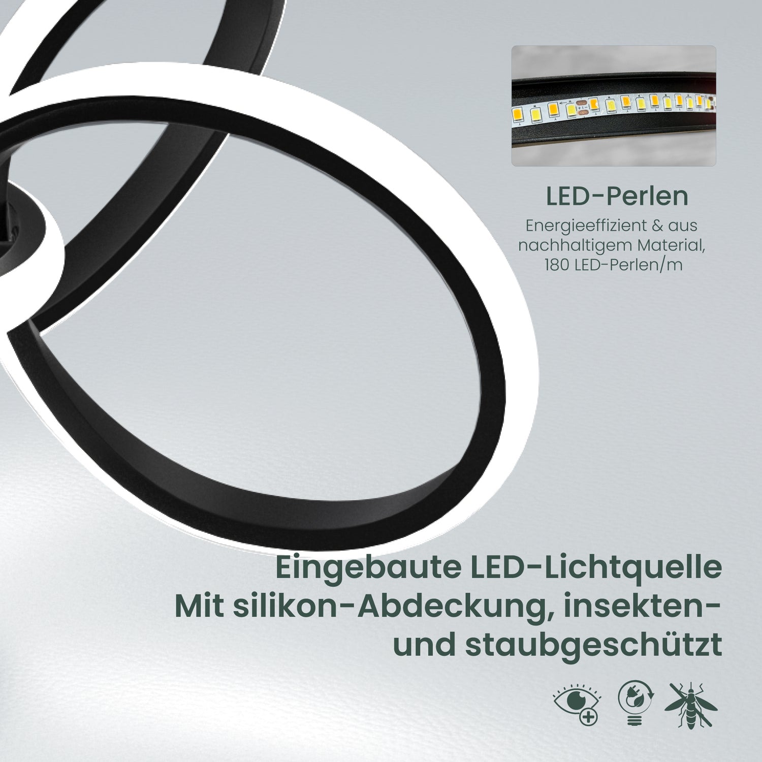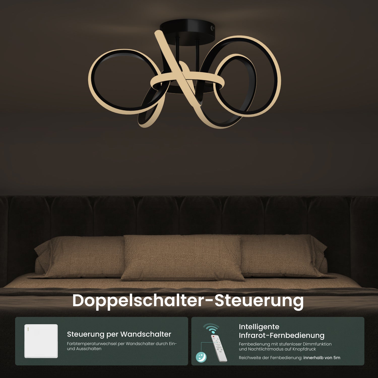 glasvilla LED Deckenleuchte Deckenlampe mit Fernbedienung, Stufenlos dimmbar 3000-6400K, flimmerfreie Zimmerlampe 65W Schwarz für Schlafzimmer, Wohnzimmer, Arbeitszimmer, Flur