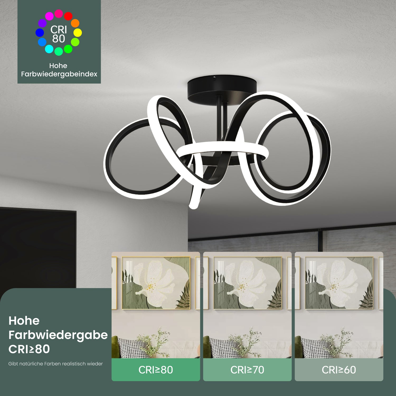 glasvilla LED Deckenleuchte Deckenlampe mit Fernbedienung, Stufenlos dimmbar 3000-6400K, flimmerfreie Zimmerlampe 65W Schwarz für Schlafzimmer, Wohnzimmer, Arbeitszimmer, Flur - Schwarz ist auf Lager und wird versandt, sobald es wieder verfügbar ist